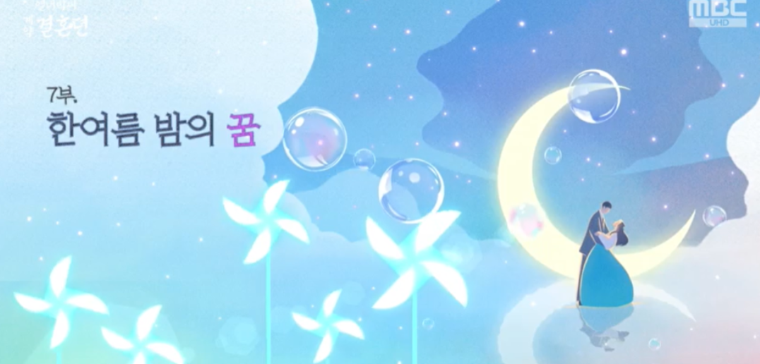 본가 별채에서 무사히 빠져나온 태하는 자신을 걱정하는 연우에게 어린시절 그곳에 갇혀 엄마를 잃었던 트라우마에 대해 이야기 하고 연우는 태하를 안아주며 상터를 보듬어 줍니다.  SH그룹과 미담의 기념행사를 준비하면서 연우의 디자인이 유출되고 , 피날레 의상이 가위질당하는등 우여곡절을 겪지만 두 사람은 서로에 대한 믿음으로 함께 쇼를 성공적으로 마치게 됩니다. 텅빈 쇼장에서 연우가 태하에게 서방님의 그림자가 아닌, 태하 그 차제로 좋아하는 자신의 마음을 고백하고 둘이 키스를 하면서 7회는 끝이 납니다.