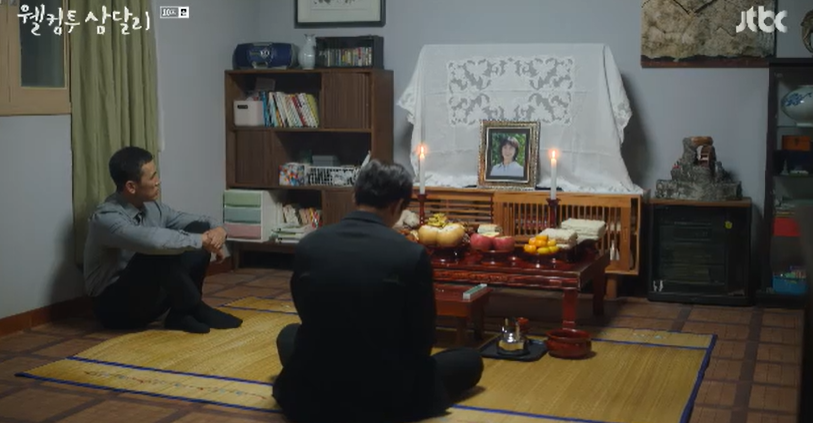 결국 엄마 제사상 앞에 앉이 제사를 지내고 있는 용필. 상태는 한번더 단호하게 삼달이는 안된다며 반대의사를 밝히고 용필과 아빠는 말다툼을 하게 됩니다.