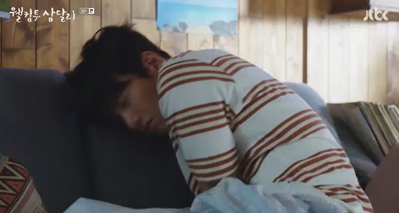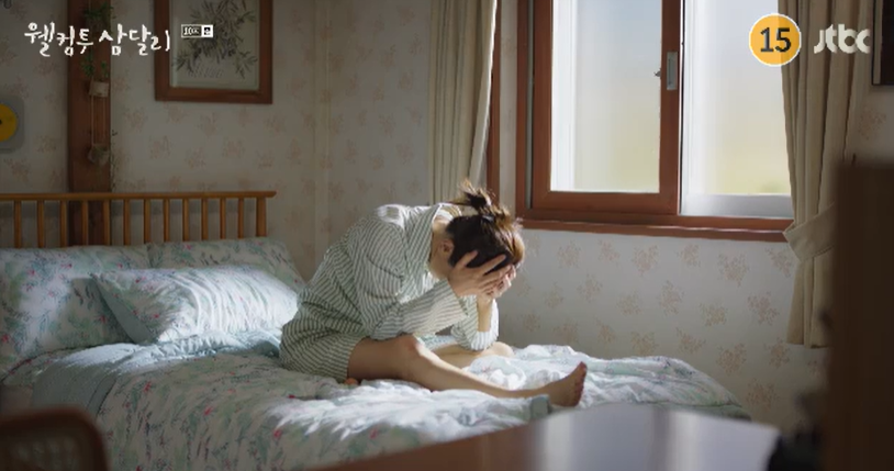 어렴풋이 듬성듬성한 기억을 떠올리다가 키스직전 필름이 끊긴 삼달. 떠올릴 수록 새록새록 당황스러운 상황에 스스로에게 기억해 내라고 다그치고 있지만 기억이 온전치 않아 답답한 상황입니다.