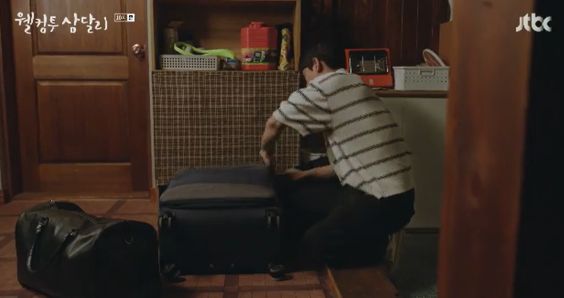 캐리어 가방을 들고 나와 떠나가며 모질게 말하고는 뒤도 돌아보지 않고 가는 삼달.