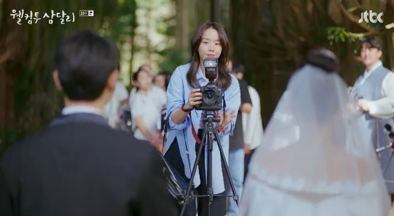 관광지에 갔다가 우연히 셀프웨딩을 찍던 사람들의 부탁으로 2컷정도 찍어줬는데 예쁘게 나왔다며 좋아하는 커플을 보고 주위커플 들도 모두 삼달에게 사진을 부탁하고 그런 삼달을 보면서 용필도 흐뭇해하게 됩니다.