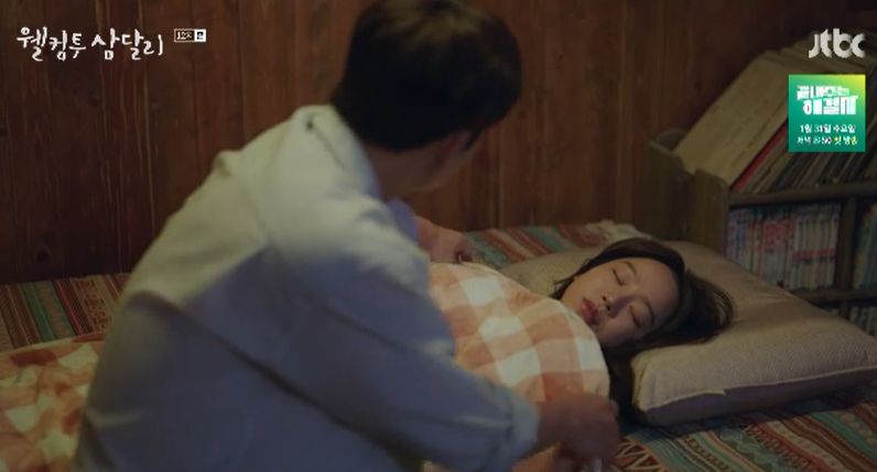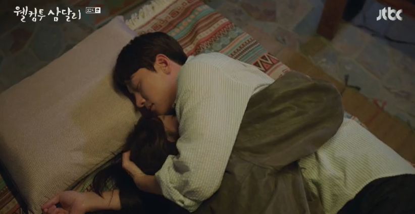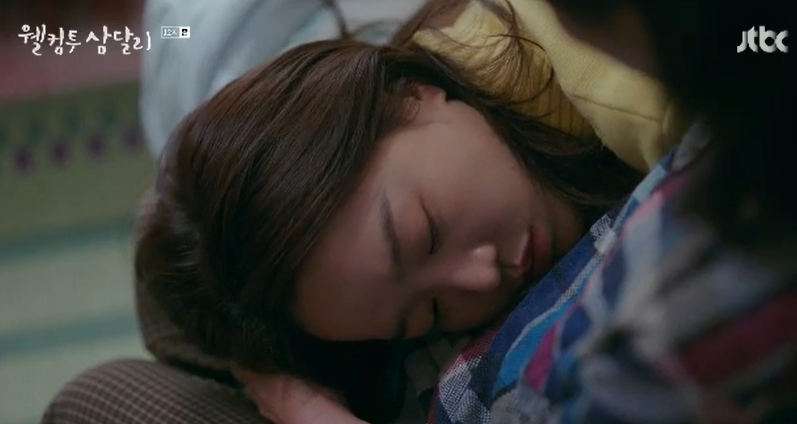 용필은 삼달의 다리를 편하게 놓아주고 이불을 덮어주며 지켜보다가 자신도 곁에서 잠이 듭니다.
