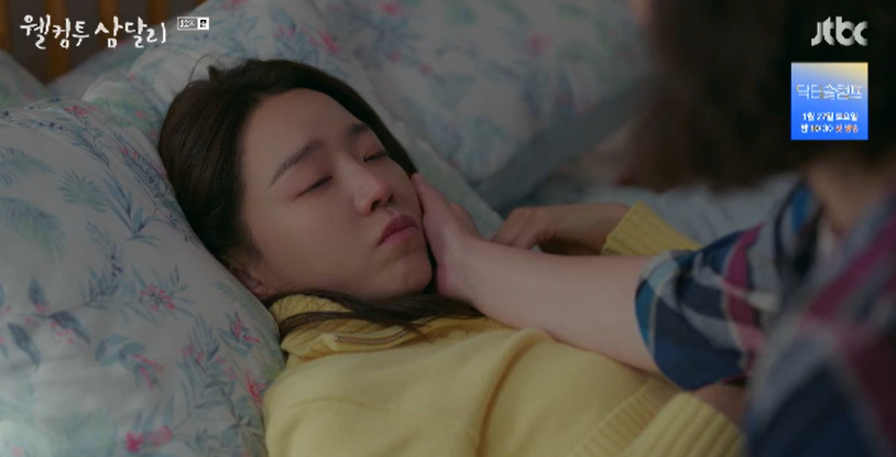 집으로 졸아온 삼달에게 엄마 고미자는 속상한 마음에 방은주 연락처를 내놓으라며 화를 냈는데 이내 미안하고 삼달이 안타까운 마음에 누워있는 삼달에게 다가와 따뜻하게 안아줍니다. 엄마품에서 아픈다고 이야기도 하고 어리광을 부리며 치유를 받는 삼달.