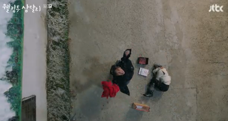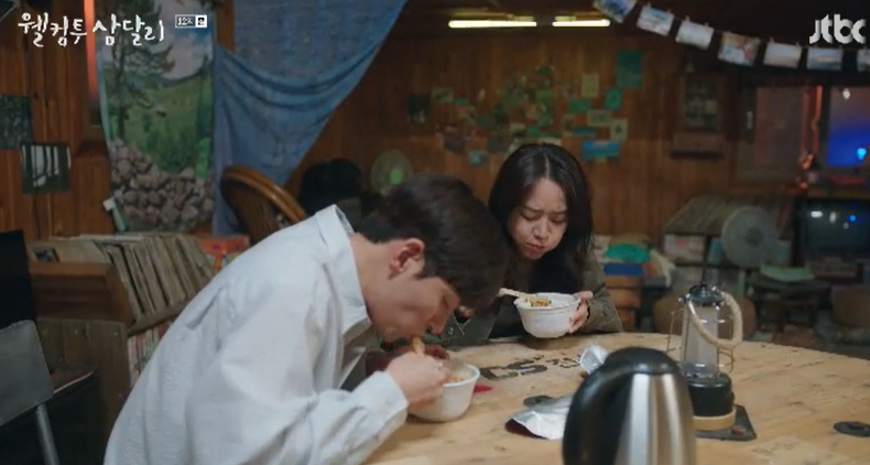 전날 함께 라면을 먹다가 김치를 찾던 용필이 마음에 걸려 집에 있던 김치를 가지고 쪼르르 가지고 온 삼달. 그런 삼달이 너무 귀여운 용필은 다 알면서 자신은 안먹는다고 장난을 쳐봅니다.