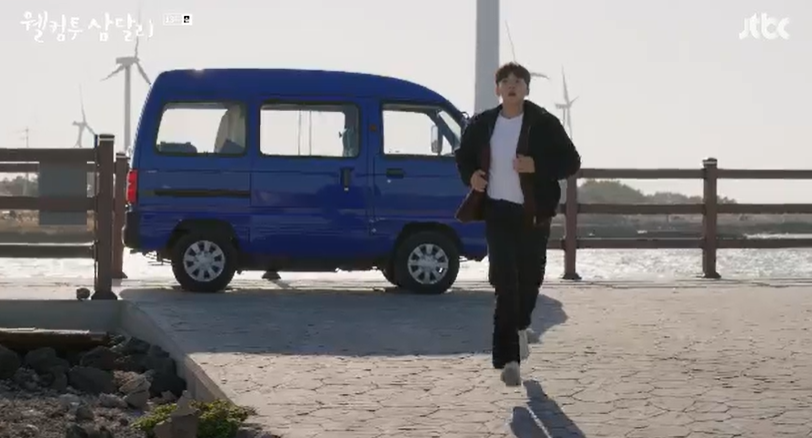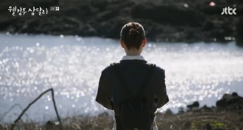 어시가 보내준 사진들 속에서 용필이 남긴 글들을 보고 생각에 잠겨있는 사이 섬에 물이 차오르기 시작했습니다. 그때 멀리서 삼달을 부르며 달려오는 용필.