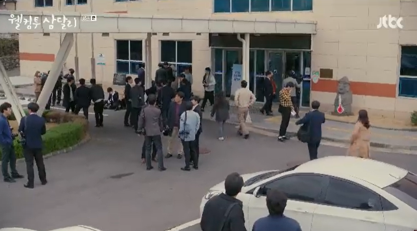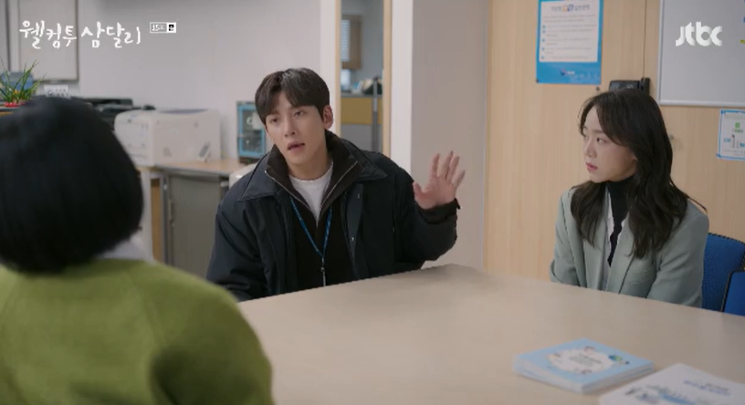 기사를 본 삼달은 수습을 하기 위해 기상청으로 오고, 입구에서 경태와 은우를 만나 응원을 받습니다.