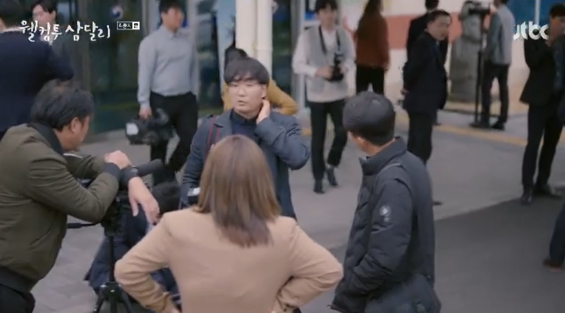 서울에서부터 삼달에 대한 악의적인 기사를 쓰고 제주까지 찾아와 친구들과 카메라때문에 실랑이를 했던 기자와 마주친 용필은 멋적게 전시회 잘 부탁한다며 인사를 합니다.
