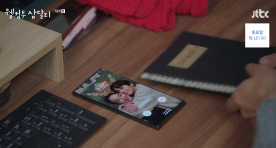 친구들이 돌아가고 아지트에 혼자남은 삼달은 용필에게 전화를 합니다. 세계기상기구 관련 스터디를 하던 노트와 삼달과의 커플 사진이 담진 휴대폰을 나란히 두고 생각에 잠겨있던 용필은 삼달한테 전화가 오자마자 노트를 다시 서랍속에 넣어 버립니다.