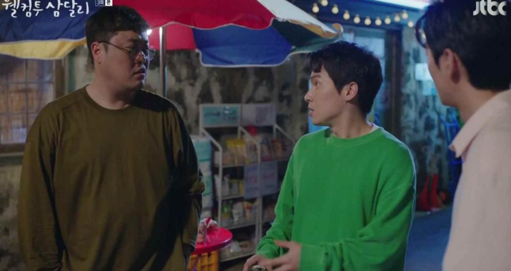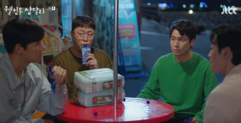 굳이 숨어 다니지 말라며 , 어제 삼달이 술마시고 휘청거리는 걸 자살하려고 한다고 오해한 용필은 삼달이 나쁜 생각을 할까봐 걱정하며 친구들과 같이 맥주한잔 하자고 합니다.