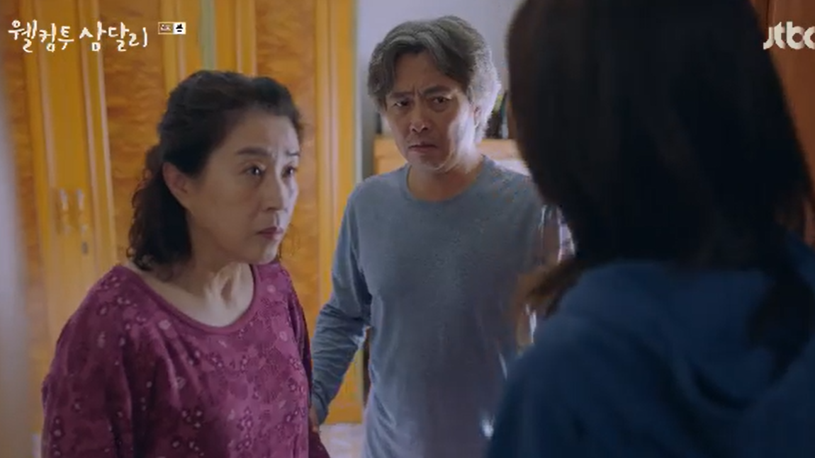 사람들 앞에 삼달을 데리고 와 학교다닐때부터 친구들이 안놀아 주는 애들만 집에 데려와 같이 놀았다는 삼달의 고운 심성을 어필하는 삼달 엄마. 어릴적 부터삼들을 지켜봐왔던 동네사람들도 수긍을 하는데 폭주한 고미자 여사는 결국 방은주가 삼달의 남친과 바람을 피고 그런짓을 했다는 이야기까지 폭로해 버리고 소문은 온 동네에 다 퍼지게 됩니다. ( 용필만 모르게..)
