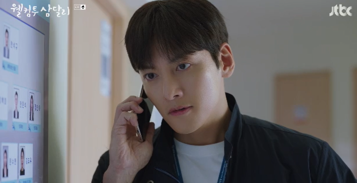 그 시간 사무실에 있던 용필은 술취한 삼달이 흘린 휴대폰이 자기에게 있는것을 몰랐다다 발견하고는 삼달 전남친, 천충기의 전화를 받게 됩니다.