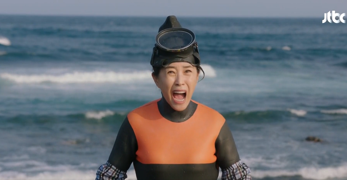 다음날 삼달리 대대적인 미역작업이 있어 해녀회장인 고미자는 딸 셋을 모두 일손을 거들도록 소집합니다.