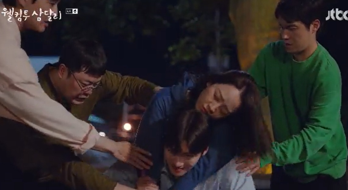 3초 이내에 쓰러져 잠들어 쓰러져 버리는 삼달에게 친구들이 달려들어 겨우 머리만은 보호를 했지만 친구들의 부상이 만만치 않습니다.