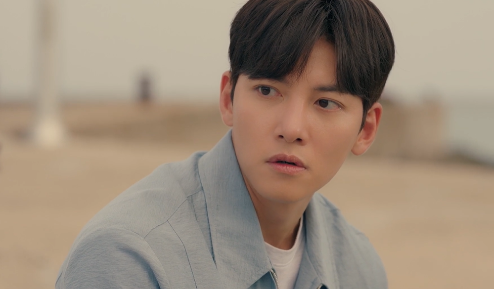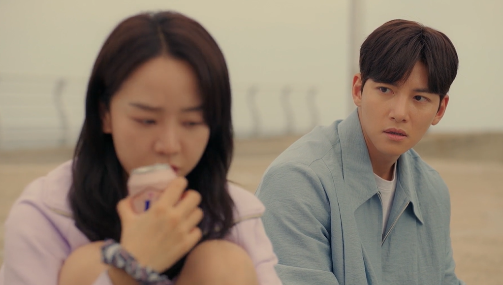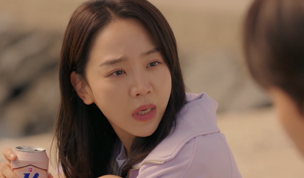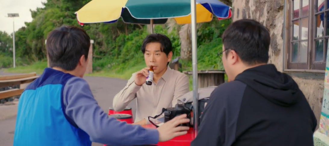 언니가 가고 삼달은 혼자 예쁜 바다 풍경을 안주삼아 심부름으로 가져왔던 맥주를 마시는데, 용필이 지나가다 보고 곁에 와 앉습니다.