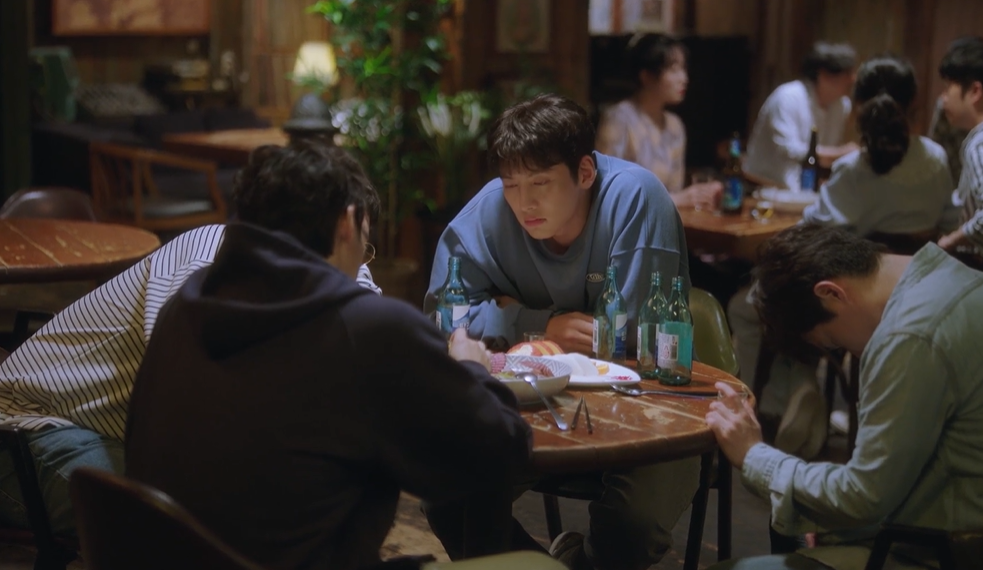 그렇게 사건을 해결을 한 후 5명은 오랜만에 화기애애 하게 한자리에서 맥주를 마시게 됩니다.