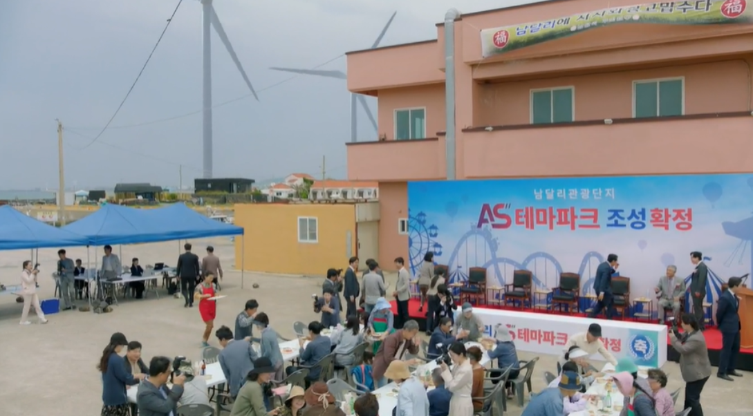 진달의 전남편인 AS그룹 대표, 전대영은 삼달리 이웃마을인 남달리와 AS테마마크 조성을 위한 협약식에 참석하기 위해 제주에 왔습니다.