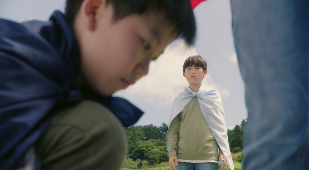 삼달 운동화 끈이풀린 것을 보고 상도가 묶어 주려고 하는데 이미 용필이 먼저 끈을 묶어주고 있는 상황.