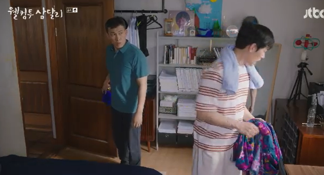 아직 삼달에 대한 미련이 가득한 용필은 삼달과 관련된 물품을 애지중지 하는데 아빠는 자꾸 쓰레기인줄 알고 청소중에 버리려고 합니다. 그런 아빠를 말리며 물건을 다시 챙겨놓는 용필.