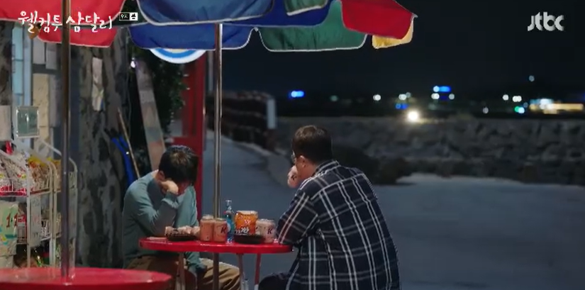 낮에 기상청에서 들려서 용필이 무려 8년동안 삼달을 잊지 못하고 있었단 사실을 알게된 경태와 은우는 맥주를 마시며 그런 용필이 안타까우면서도 바보같다고 이야기 하고 있습니다.