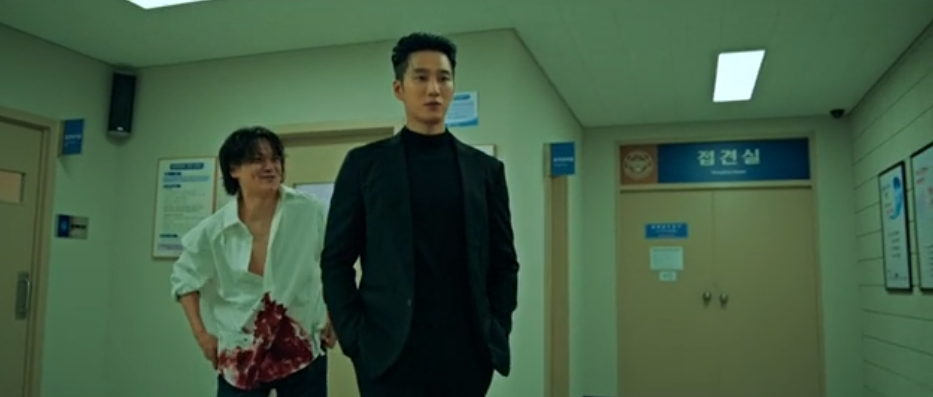 이수는 친구 김영환을 찾아가 보는데, 약을 못해서인지 자신을 빼달라며 상태가 더 안좋아 보입니다. 이수는 친구에게 진정하라고 말해주고 나옵니다.