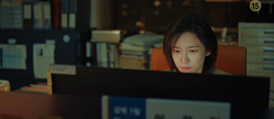 강현이 이수엄마의 사건 보고서를 보고 있는데 강현에게 다가온 이수.