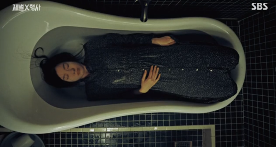 서유경의 안내에 따라 무의식, 꿈속 장면으로 들어간 이수는 그동안은 한번도 보지 못했던 바닥에 있던 문을 열고 내려갑니다. 고결국 그동안 기억하지 못했던, 욕조에 빠져 죽어있는 엄마의 모습을 보고 놀라서 최면에서 깨어납니다.