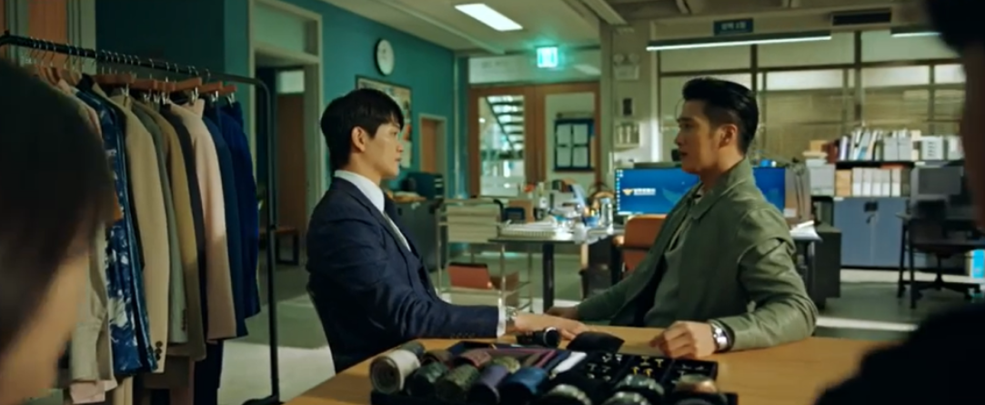 자시의 옷과 시계로 준영을 재벌남처럼 꾸며주는 이수.