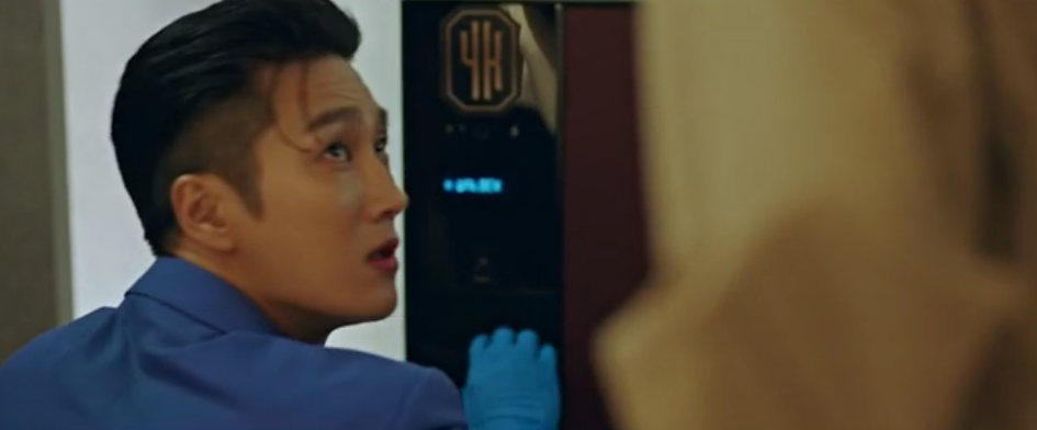 이수와 강현은 영장을 가지고 서유경의 병원으로 가서 거울뒤에 숨겨진 공간으로 들어가 비밀금고에서 범행도구를 찾아 나옵니다.