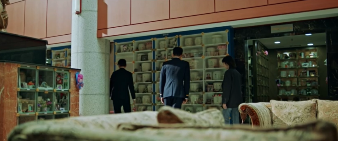 그러다가 문득, 죽은 조성구가 갖고 있던 USB는 자신만이 열수 있는 곳에 잘 보관했다는 말을 떠올린 이수는 조성구의 가족 납골장사진에서 USB를 찾아냅니다.