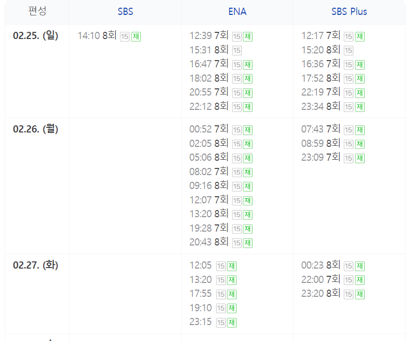 재벌x형사 재방송 편성표