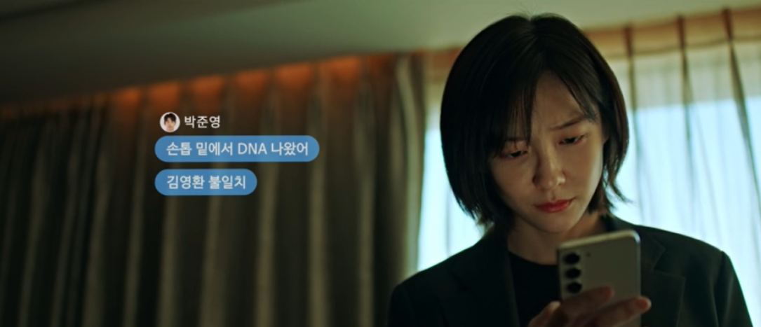 백상희를 기다리는 강현에게 한유라 손톱밑에서 발견된 DNA와 백상희가 99% 일치하다는 문자가 오는데, 마침 백상희가 나타나 인사를 하면서 9회는 끝이 납니다.