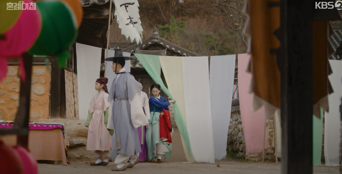 정우는 순덕에게 아직 이야기를 못끝냈으니객주에서 기다리라고 하고는, 세자를 데려다 주러 갑니다.