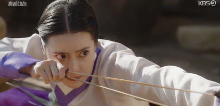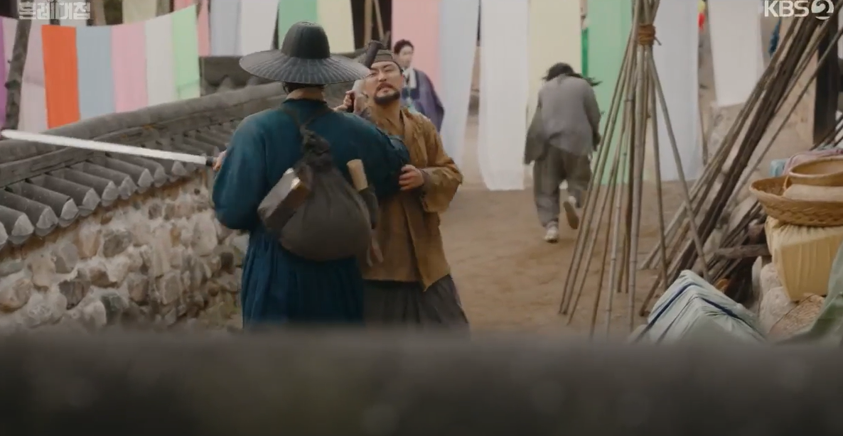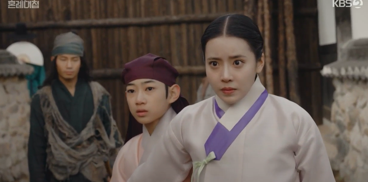 하나는 새총으로 세자를 쫒는 사람들을 방해해 보지만 역부족. 결국 도망치다가 세자와 하나는 막다른 곳에 다다랐는데 정우와 순덕이 나타나 도와줍니다. 칼다루는 법도 책으로만 배운 정우가 용기내어 나서보지만 겁먹고 피하는 상황.