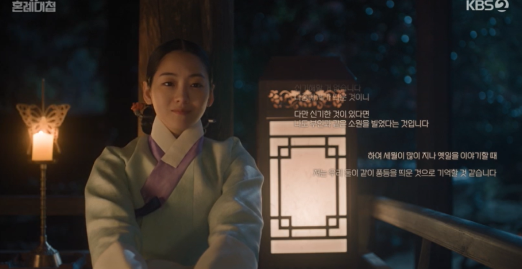 박씨부인은 정우를 통해 임금께 자신의 딸 예진과 원녀들의 혼인을 함께 치르게 해달라고 청을 올립니다. 그렇게 해서 역모죄를 피한 자신의 집안이 건재함을 세상에 알리고 싶은 박씨부인.