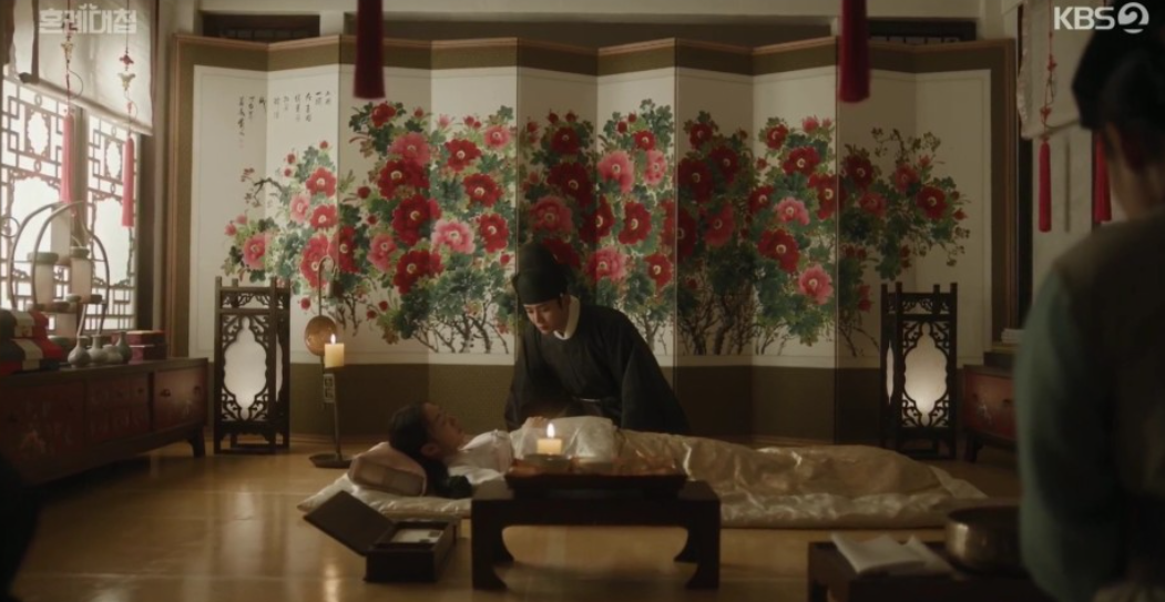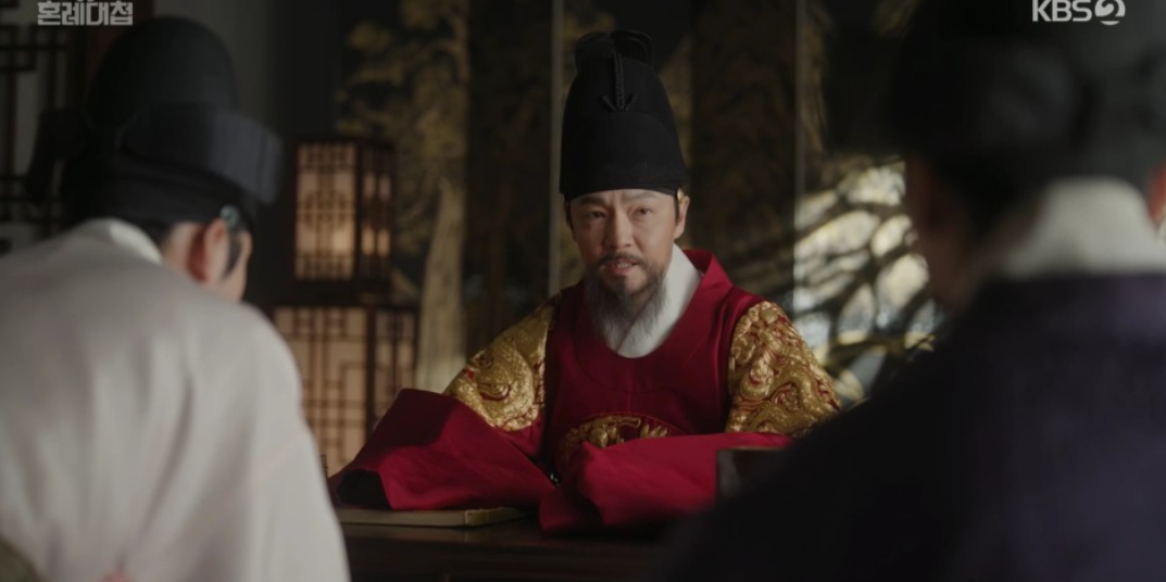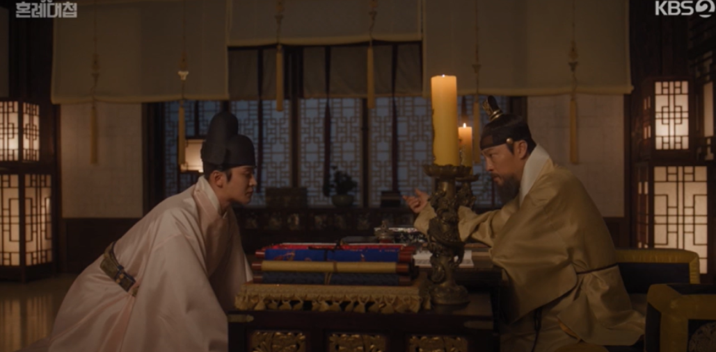 좌상과 박복기의 처벌에 대해 정우와 의논하며 역모보다는 살인죄로 사건을 정리하려고 하는 임금과 정우. 하지만 그때 도승지가 찾아와 궁녀가 깨어나 좌상이 세자를 노리고 금잠고독을 궁녀에게 먹였다는 증좌를 확보하고는 살인죄가 아닌 역모죄로 다스려야 한다고 고언을 올립니다.