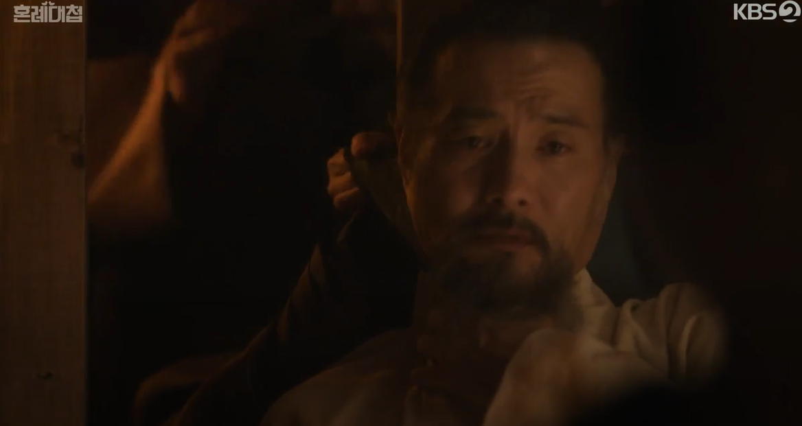 임금은 추포된 조영배에게  세자를 죽이려한 역모의 죄를 받을지 8년전 며느리를 죽인일에 대한 죄를 받을지 선택하라고 합니다. 박복기 역시 선택의 기회가 주어졌고 주저없이 역모의 죄를 선택했습니다.