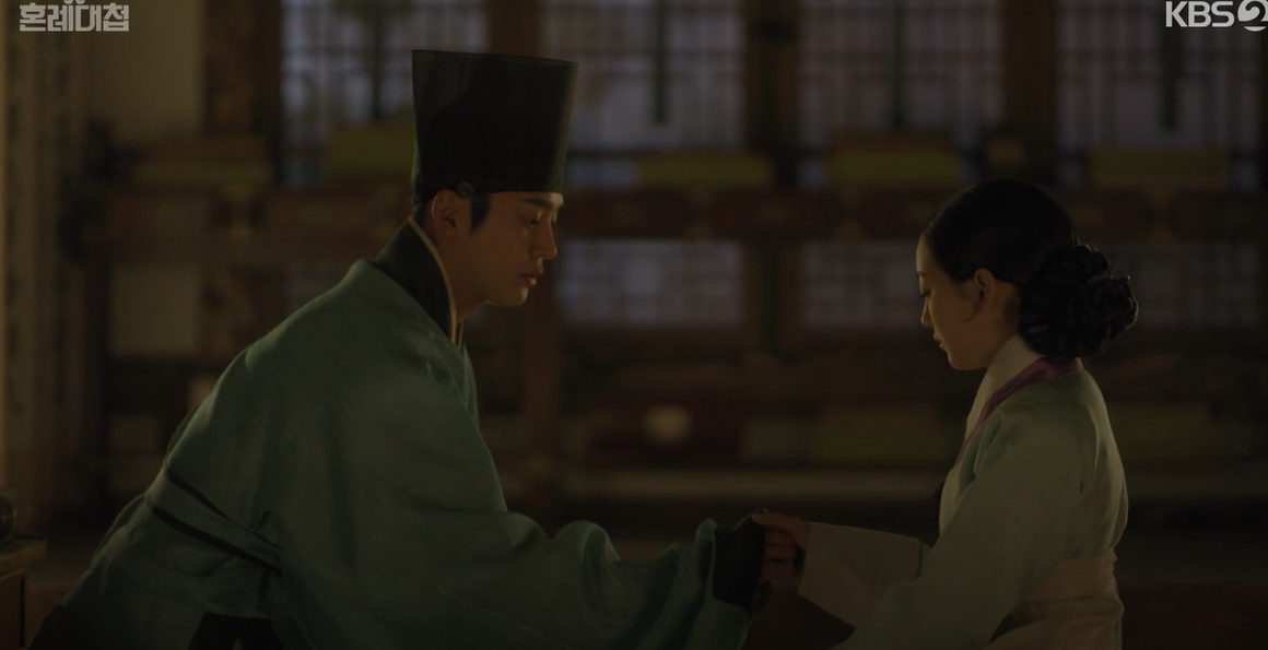 사건이 해결되자 임금은 서둘러 세자의 혼례를 할 수있도록 준비하라 명하고 정우는 맹박사댁 조씨부인을 찾아가 세자비 간택이 하나낭자도 혼인단주를 넣어 지원을 하도록 당부합니다. 이미 하나와 세자를 이어주는 빨간 끈을 본적있는 조씨부인은 알겠다고 합니다.