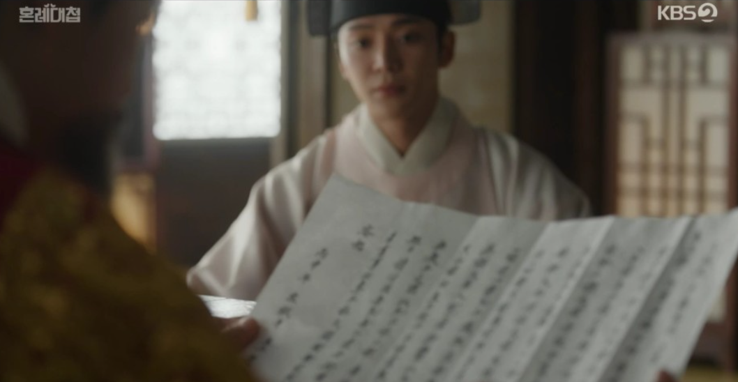 이후 정우는 임금께 맹박사댁 혼사가 모두 진행되더라도 처음 계약했던 것처럼 자신이 올린 혼인 무효상소를 들어주지 말라고 부탁을 합니다. 사실 정우가 혼인무효상소를 올린것은 진짜 공주와의 혼례를 되돌리고 싶었던 것이 아니라 공부가 유언으로 부마로 묶여 있지 말고 출사하여 아버지인 임금을 도와달라는 유언을 남겼기 때문이였음을 전합니다.