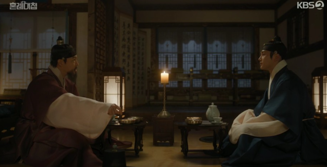 여느 장인처럼 사가로 정우를 찾아간 임금은 정우가 계속 올렸던 혼인무효상소를 윤허할 뜻을 밝히며 앞으로 세자와 자신을 잘 보필해 달라고 이야기 합니다.