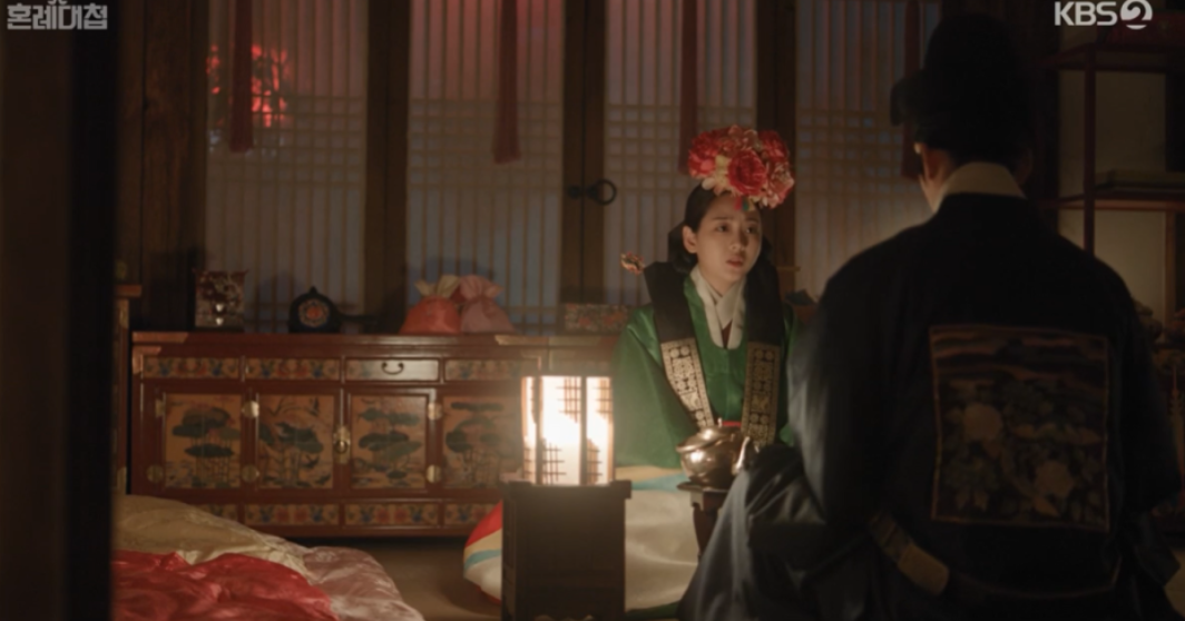 드디어 혼례당일. 근석은 고모예진에게 부겸과 물고기를 잡았던 날이 좋았다는 이야기를 하고, 예진은 부렴을 떠올리면서 다른사람과 혼인을 해야하는 처지이지만 자신이라도 시집을 잘 가서 집안과 근석에게 도움이 되어야 한다는 생각에 마음이 무거운 상태입니다.