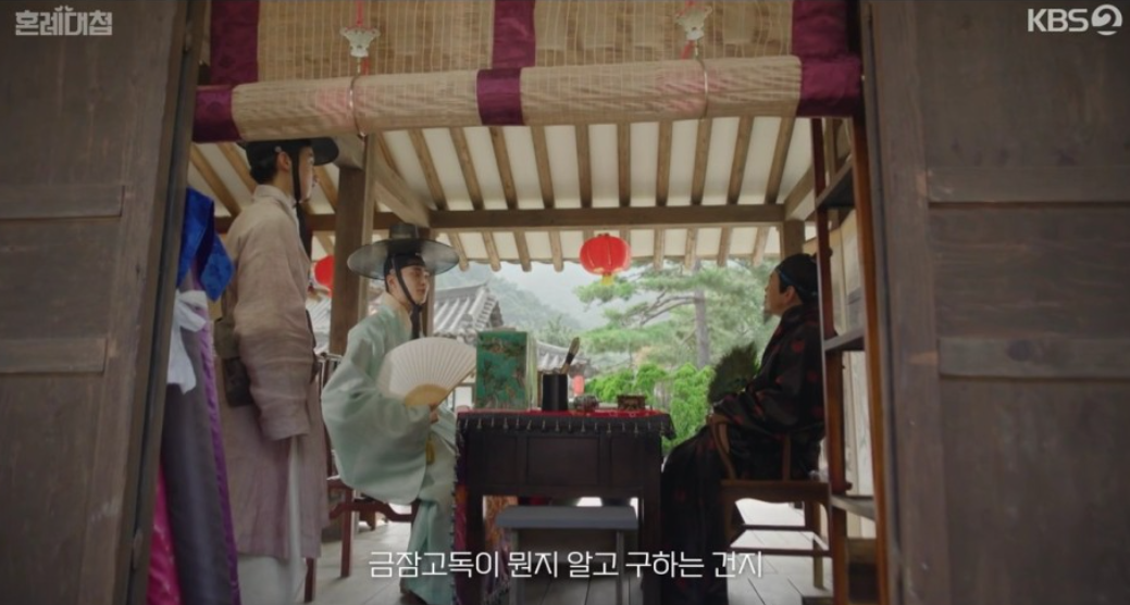 시어머니가 안 계신 사이 순덕은 어머님 대신 손님 식사를 준비하려다가 대화를 엿듣게 되는데 시아버지가 부인의 동생, 병판 박복기를 통해 정우가 구했던 것과 같은 금잠고독을 손에 넣는 순간이었죠.  다행히 시아버지인 좌의정 조영배는 큰 의심 없이 순덕을 물러가게 합니다.