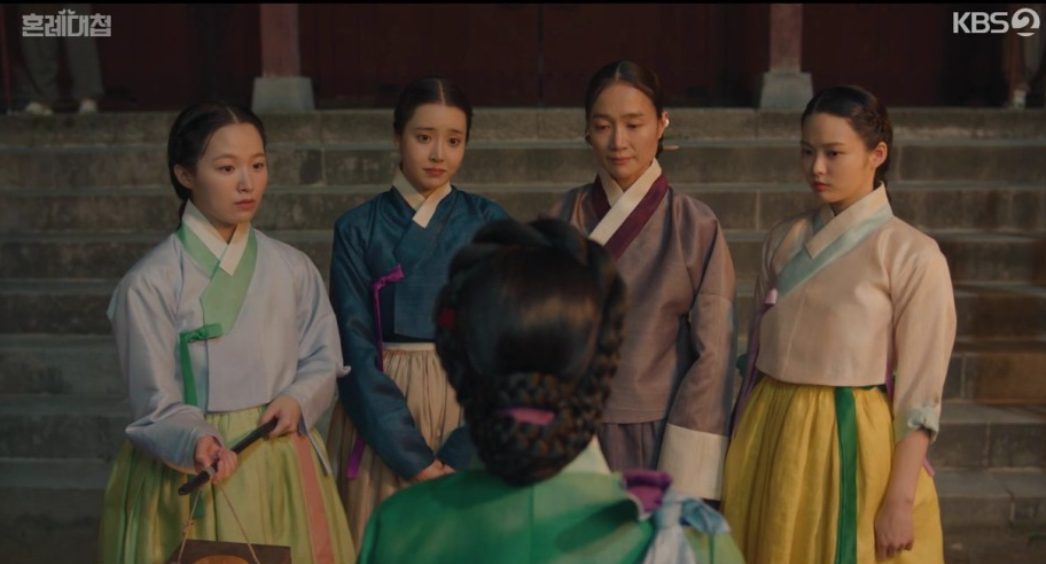 순덕이 가르쳐준것과는 달리 너무 해맑게 웃는 삼순을 보고 큰일났다며 순덕에게 이르는 정우. 둘째와 셋째가 연습을 하지 않으려 하자 삼순이 화록인것을 한성부에 고발하겠다며 협박을 하고 못내 연습에 나선 첫째와 둘째. 둘다 미모는 인정하지만 정우의 감정에는 순덕을 봤을때와는 달리 심드렁 합니다.