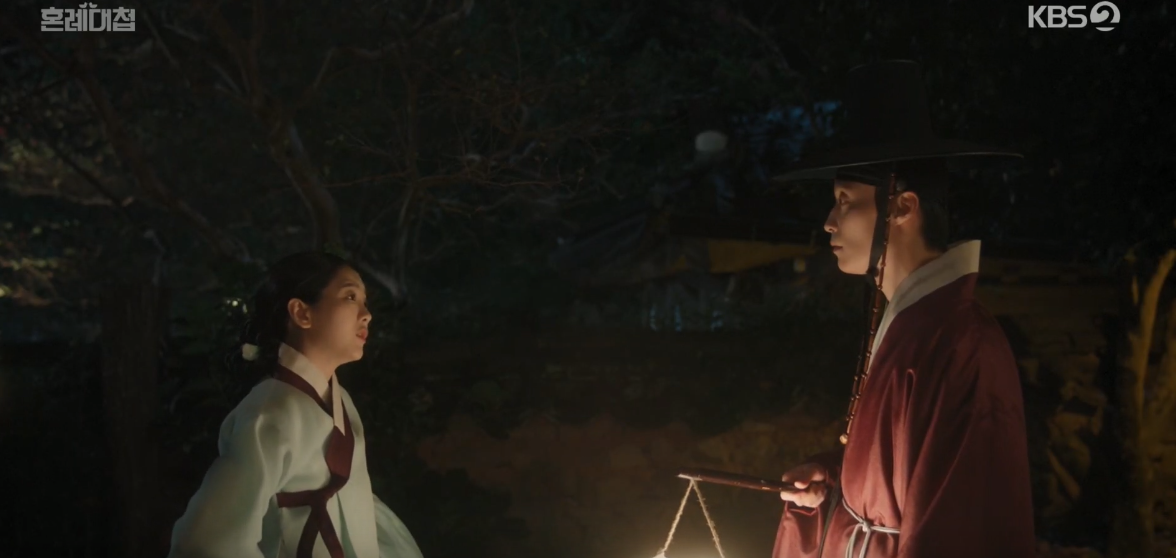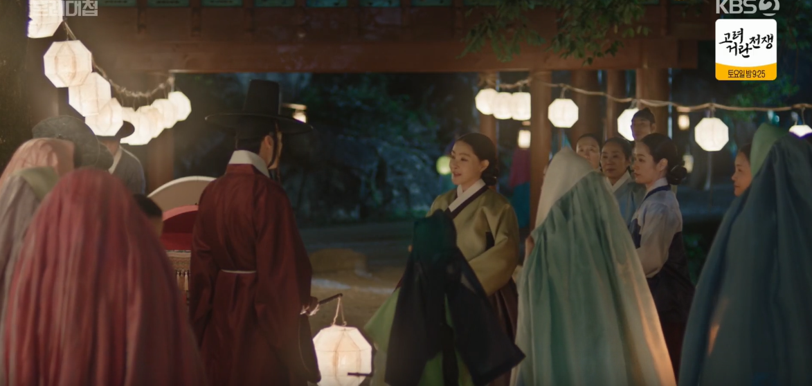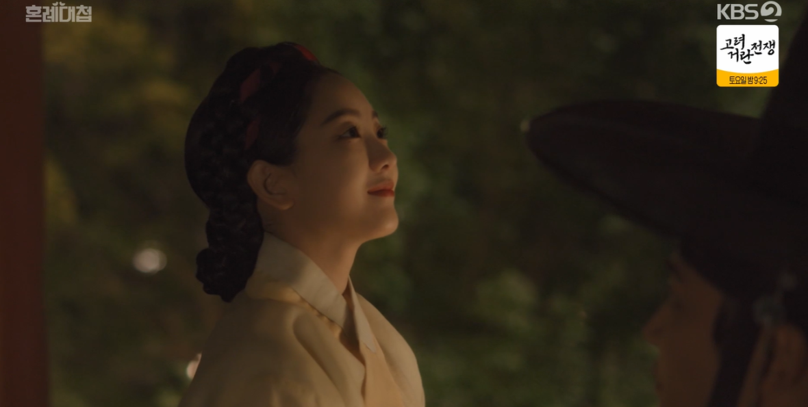 세 아가씨들의 첫눈맞기를 마친후 전망좋은 곳에 앉아 잠시 이야기를 나누는 정우와 순덕. 명우는 명나라에서 들여온 최신품이라며 풍등을 내밀고 아이처럼 좋아하는 순덕을 정우도 희뭇하게 바라봅니다.