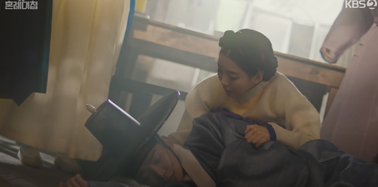 종사관이 병판을 막아서 화살은 약간 빗나갔지만 화록은 물에 빠져버렸는데.. 알고보니 여주댁 순덕이 위험할 것을 걱정한 정우가 대신 화록 역할을 한 상황.