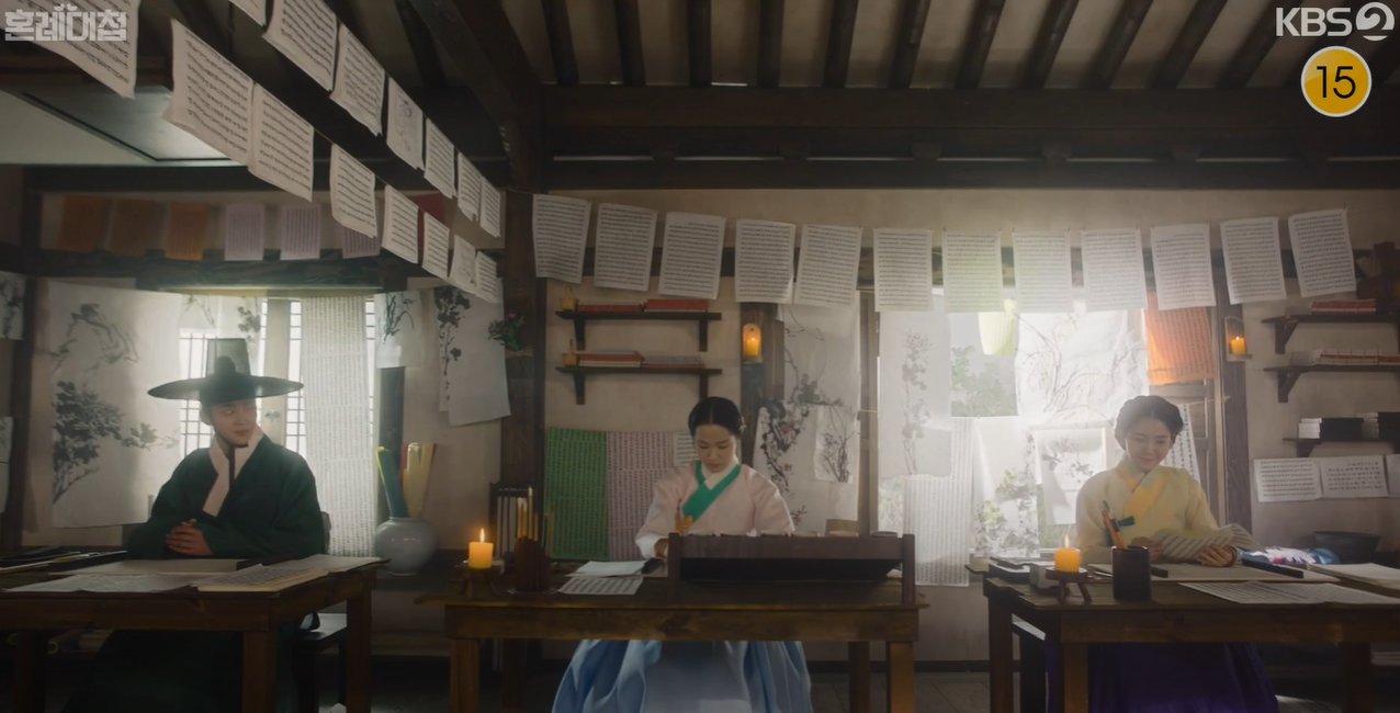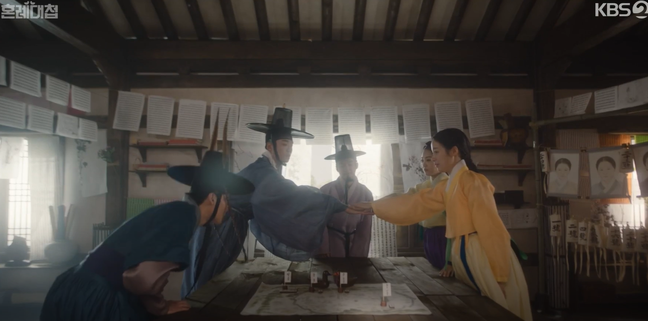 드디어 삼순의 소설이 완성이 되고, 중매대작전 팀은 필사를 위해 다시 모입니다. 이젠 남장을 할필요가 없지 않냐며 전날 밤을 새고 초췌한 모습으로 객방을 가려던 삼순을 순덕이 찾아아 오늘 종사관도 쉬는 날이라 오기로 했다며 삼순을 이쁘게 치장시켜 줍니다.