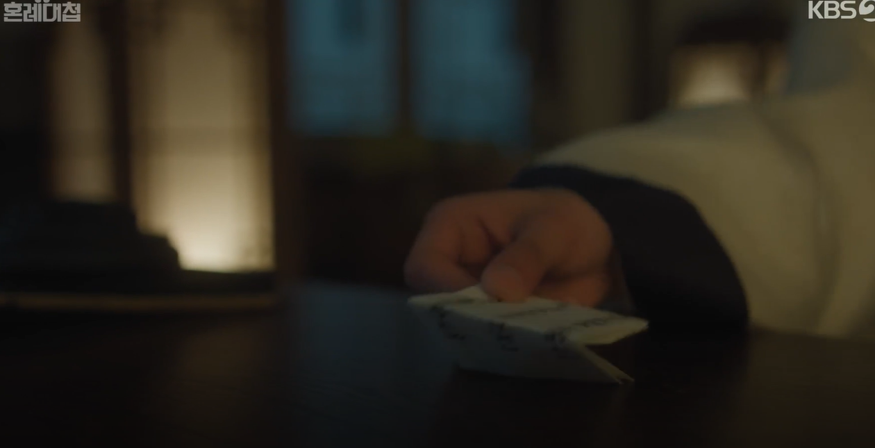 이후 필사를 하고 회의를 마치고 헤어지는데 순덕이 정우에게 슬쩍 족지를 건냅니다. 집에 와서 설레는 마음을 안고 읽어보는데, 알아서 하겠다며 파지 뒷면에 달랑 한줄써준 여주댁에게 정우는 실망을 합니다.
