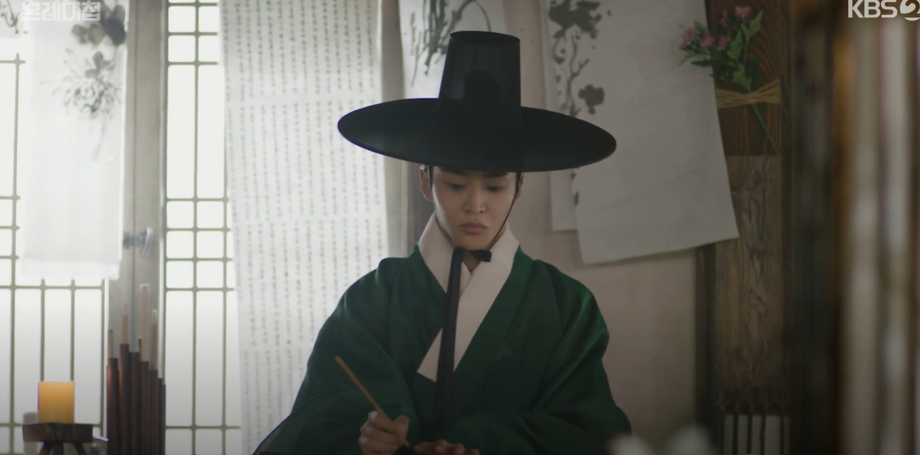 정우도 준비를 마치고 객주로 갑니다. 사람들에게 화록에 대한 이미지를 초록 도포를 입은 선비로 심어주기 위해 순덕이 부탁한대로 초록색 도포를 차려입고 사람많은 곳을 지나 객주로 가는 정우.