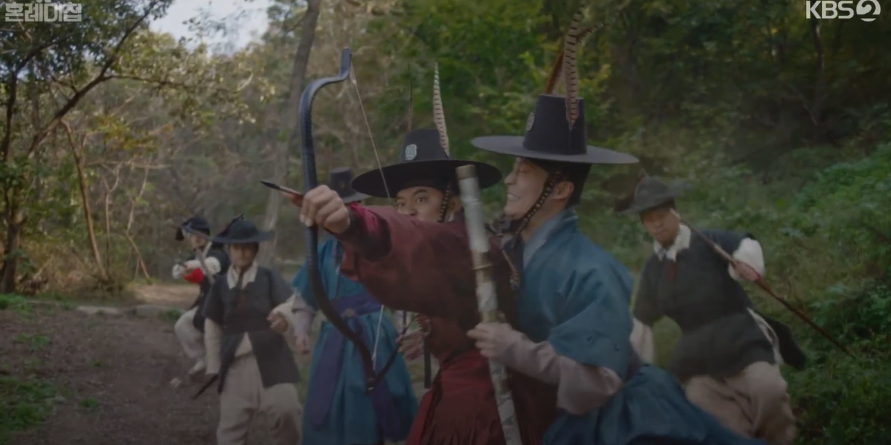 드디어 화록이 약속대로 종사관 앞에 나타났다가 도망하여 뛰어내리기로 한 안개절벽앞에 섰는데, 계획에 없던 병판이 나타나 초록도포를 입은 화록에세 화살을 쏩니다.