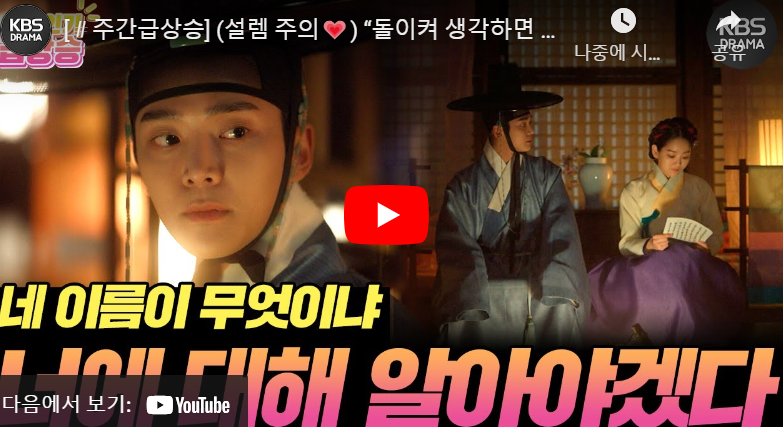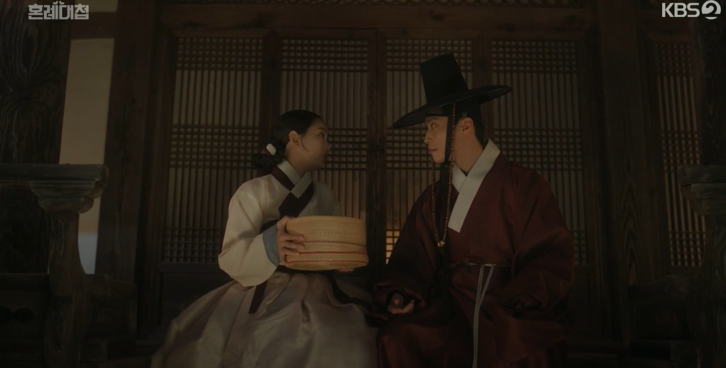 한편 혼례 전 마지막으로 아늘에게 옷을 지어주려고 두리를 부른 정씨 부인. 아들 이시열과 좌상댁 조영배의 딸 예진과 혼인이 결정되어 있는데 아들 시열은 두리에게 호감을 가지고 있습니다. 두리의 고무신을 바로놔주며 단오날 같이 씨름을 보자고 하는 시열.