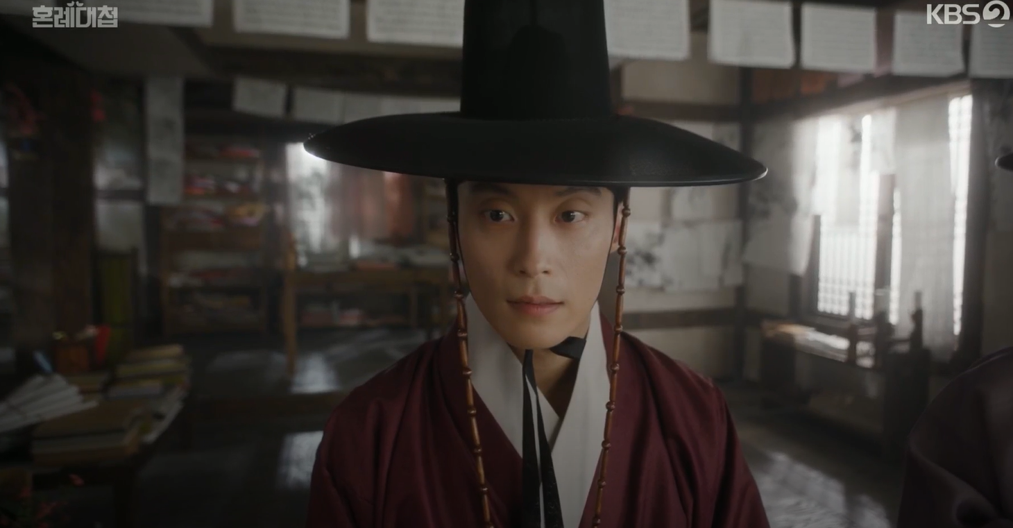 순덕몰래 시간을 앞당겨 미리 만나 회의를 하고 간 종사관과 정우. 순덕이 걱정스러웠던 정우는 전날밤 책으로 수영을 공부한 후 순덕 대신 화록 역할을 했던 것이였습니다. 객방에서 일행을 기다리다가 뒤늦게 알게된 순덕이 수영을 못하는 정우가 걱정되어서 왔다가 물에 빠진 정우를 구하게 됩니다.